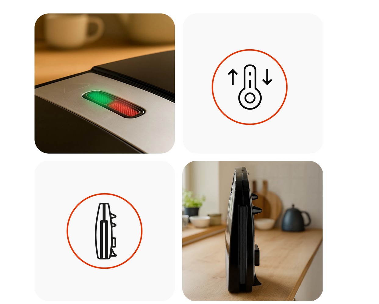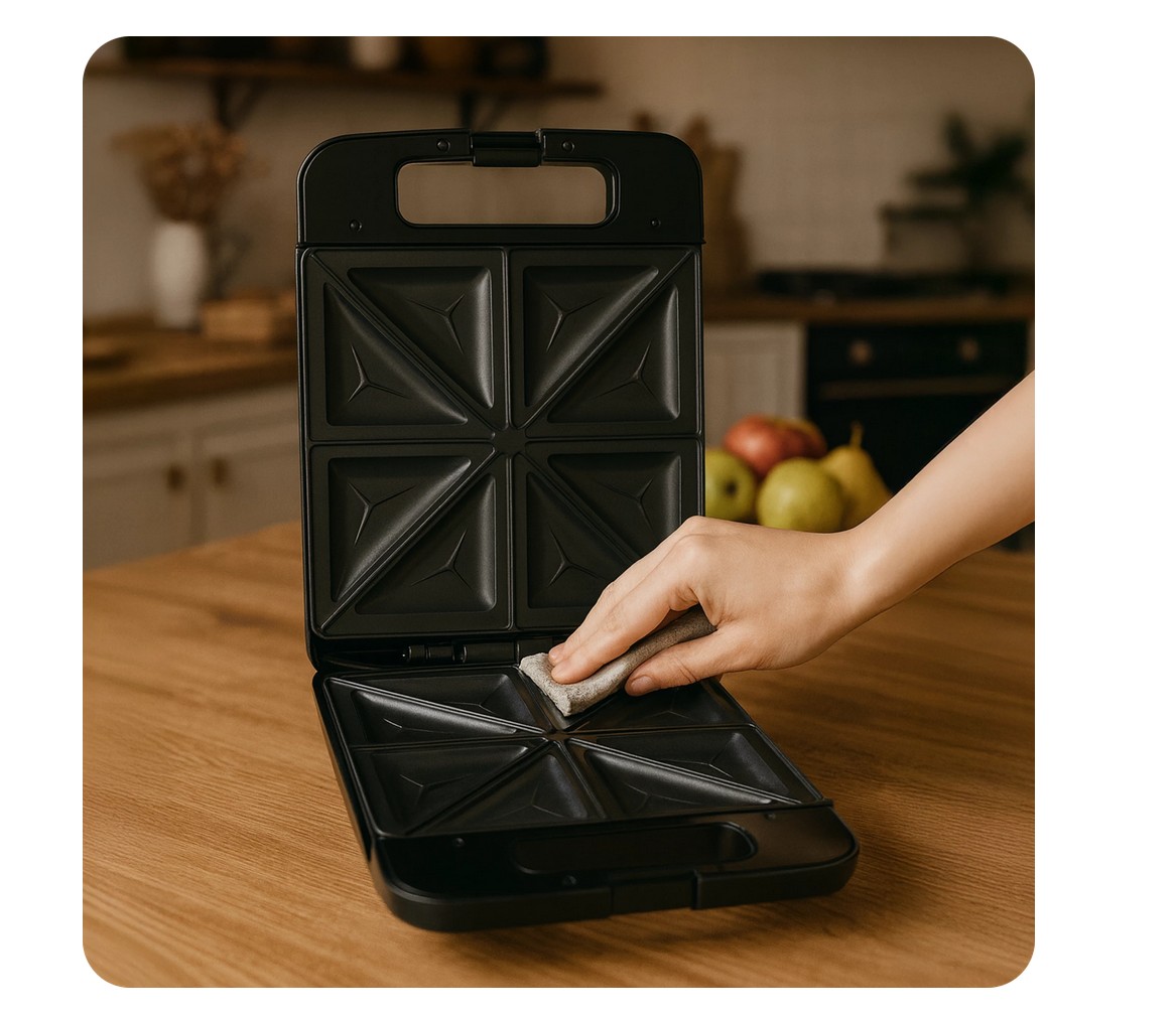 Płyty grzewcze z powłoką non-stick sprawiają, że jedzenie nie przywiera do powierzchni. Potrawy są zdrowsze, bo wymagają mniej tłuszczu, a czyszczenie urządzenia jest szybkie i wygodne. To daje Ci praktyczność i higienę użytkowania każdego dnia.