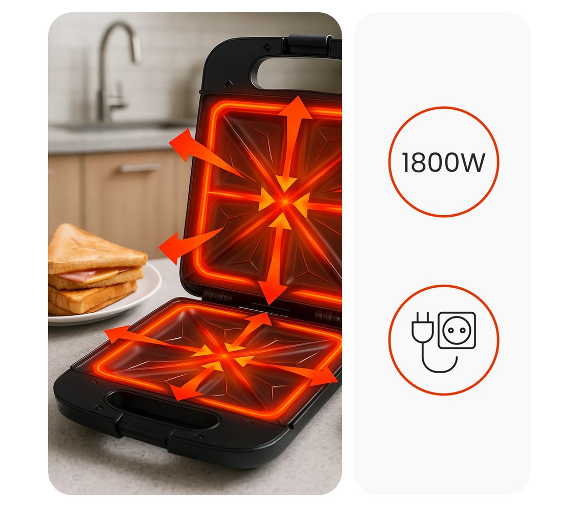 Opiekacz do kanapek 1800W, sandwich na 4 kanapki, XXL